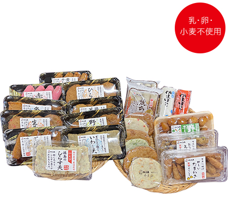 近年増加する卵アレルギーの方にも安心して食べていただけます。保存料も使用していませんので、添加物が気になる方にもお薦めの商品です。当社伝統の杵と臼での練り製法により、卵白を使わなくても滑らかでしなやかな食感になりました。また、さっぱりとした味付けですので、そのまま生食はもちろん、煮物や天ぷらなど、様々なお料理にお使いいただけます。